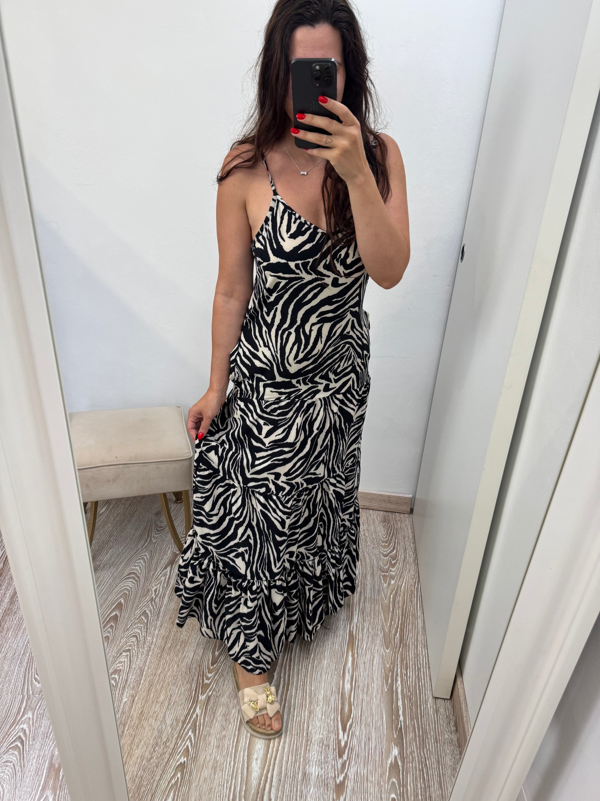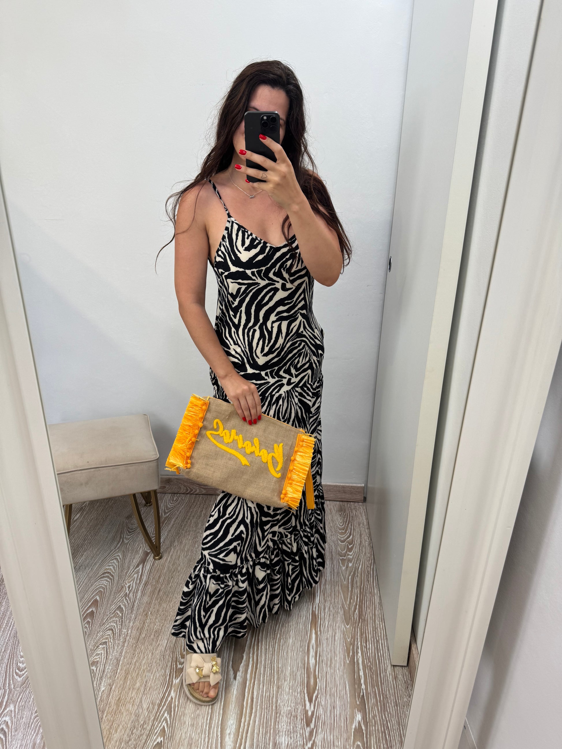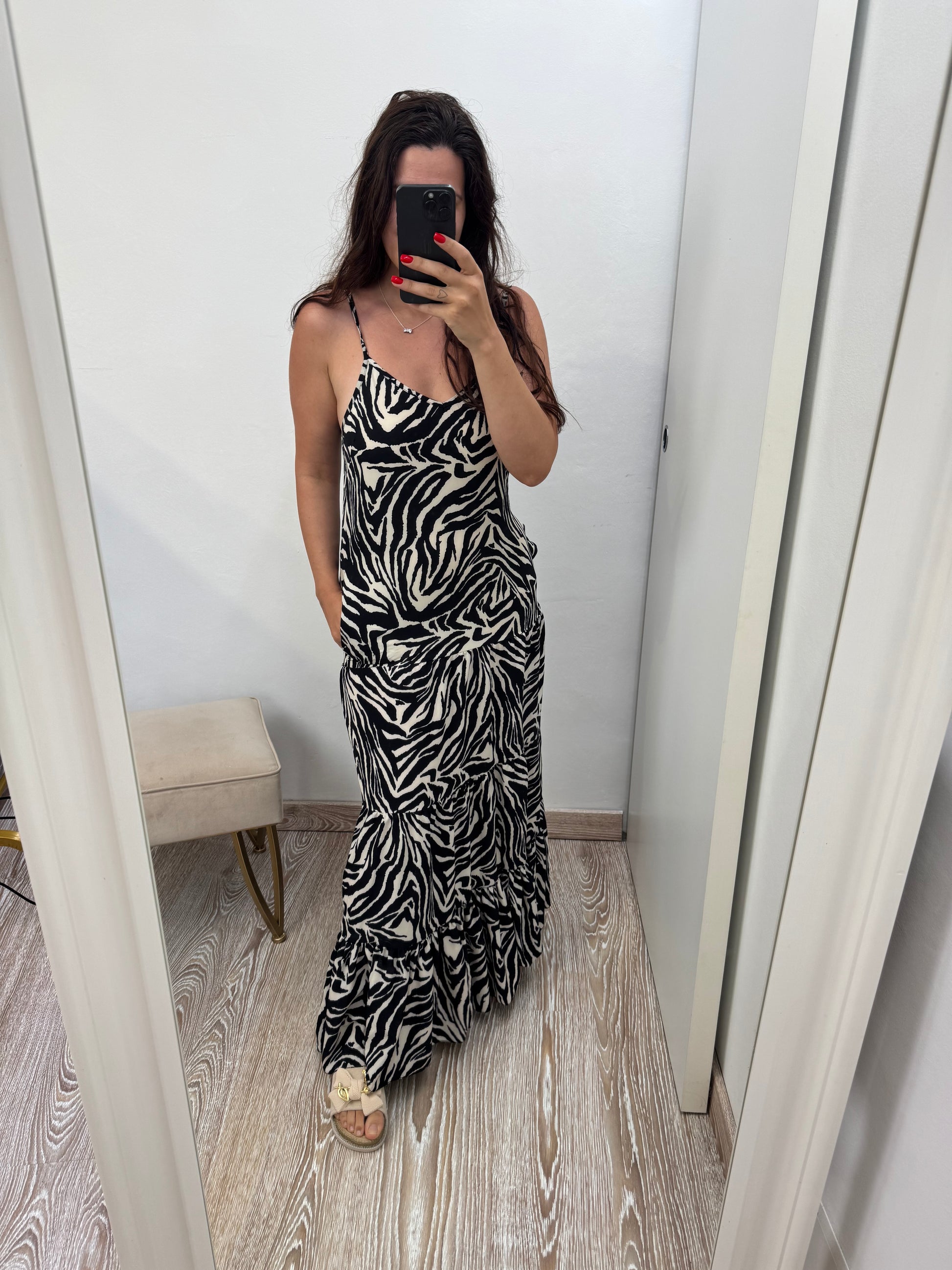 - Abito lungo con bretellina e tasche