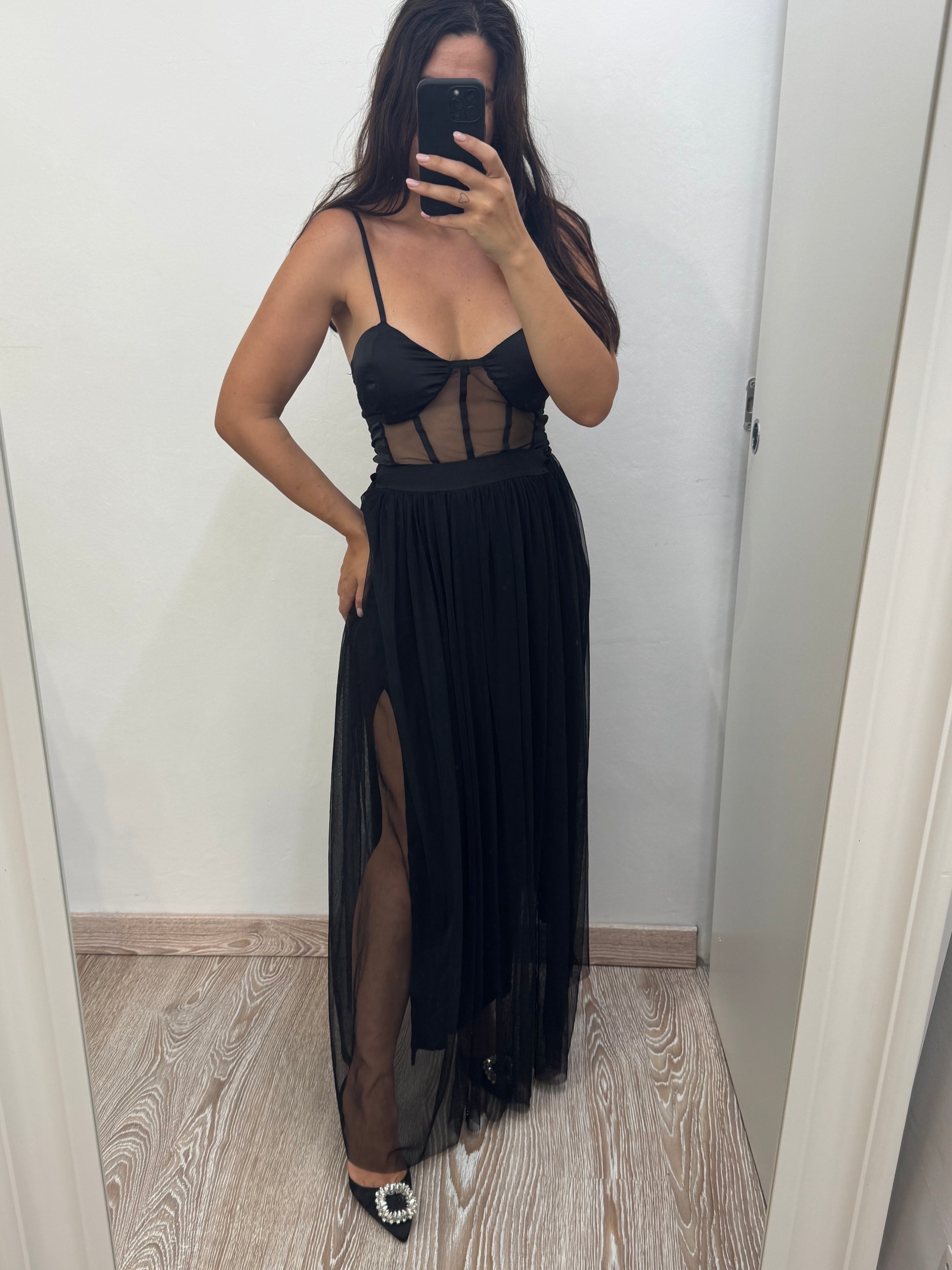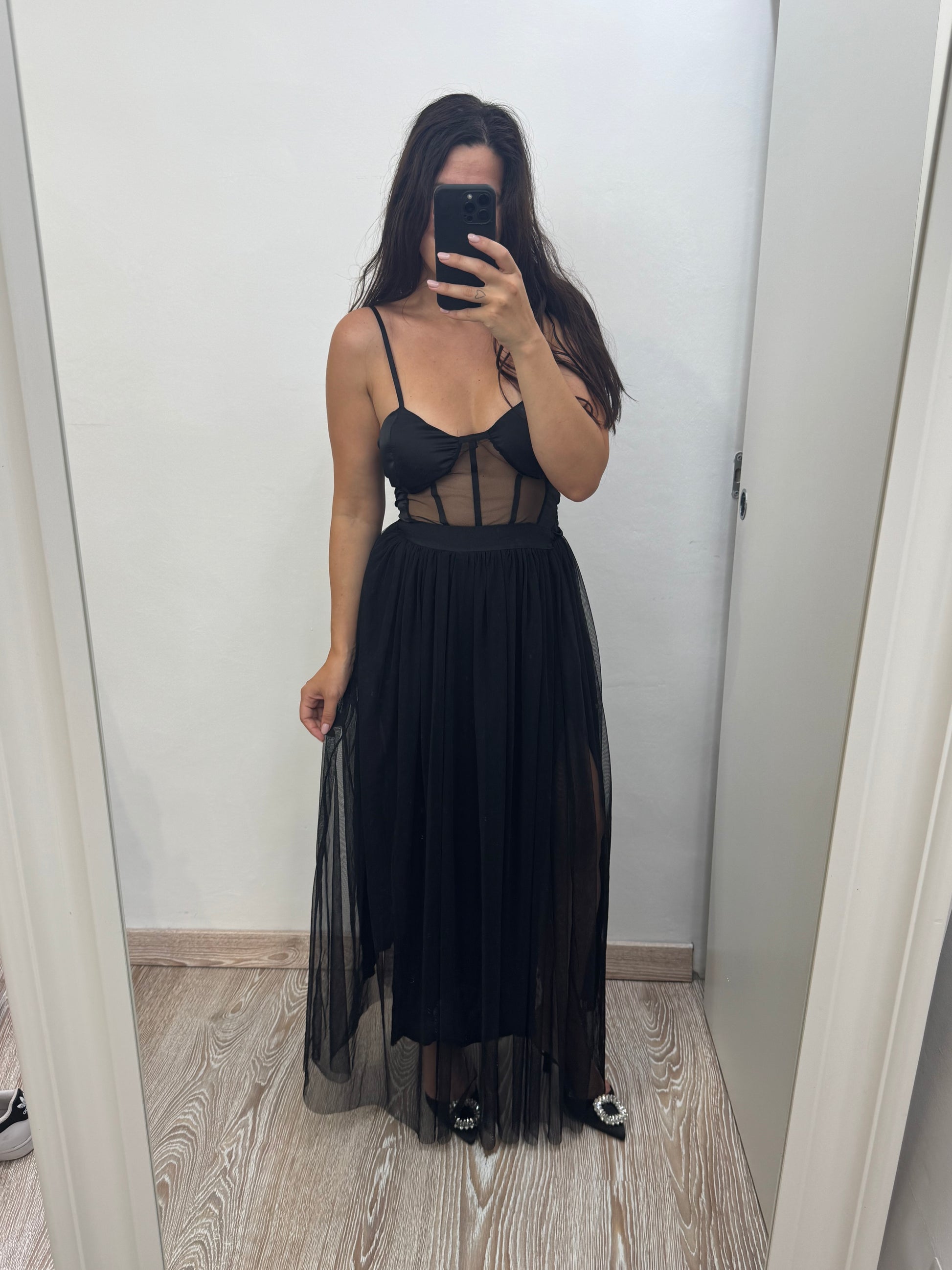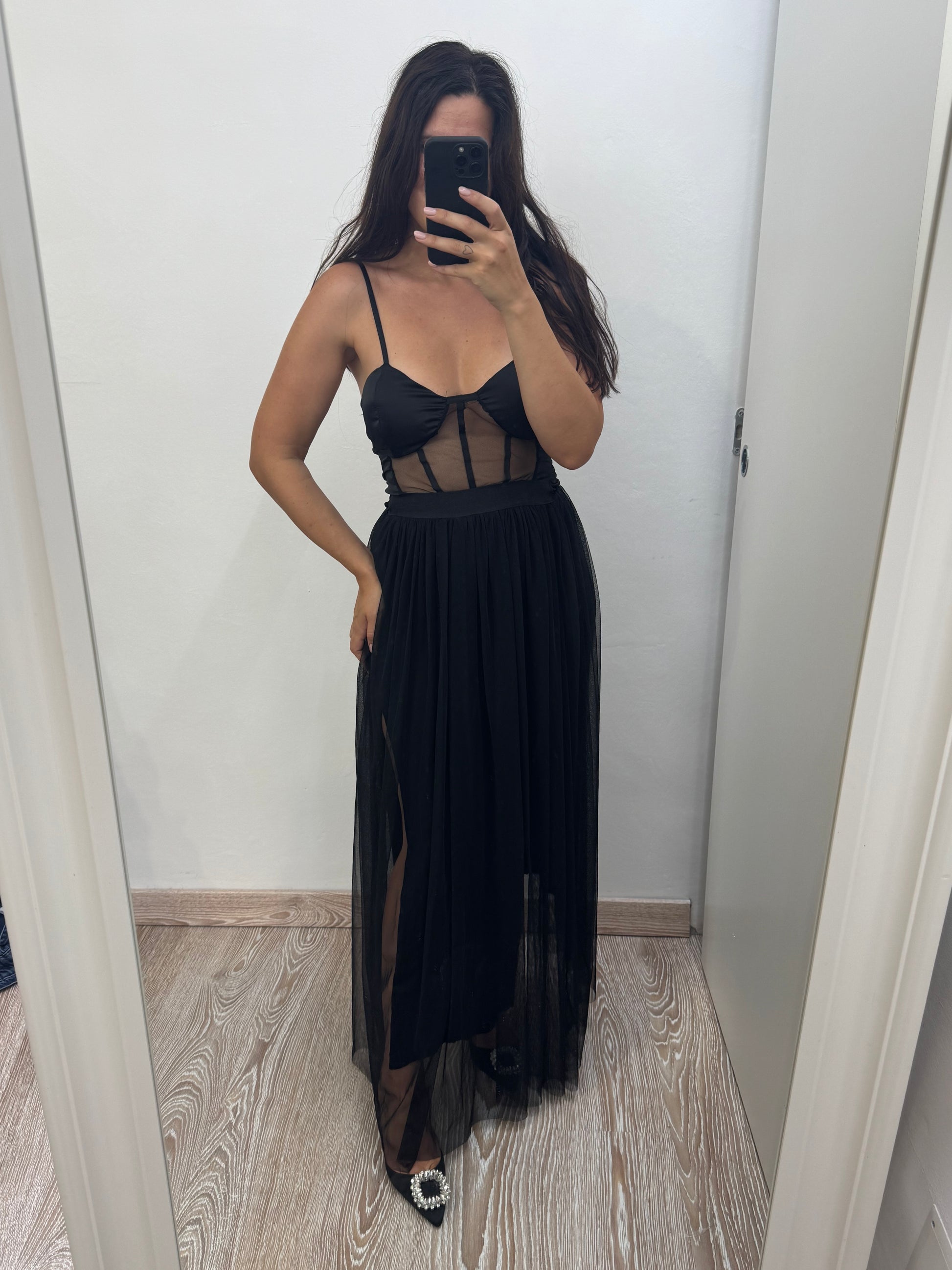 Abito lungo con tulle e corpetto coppe preformate