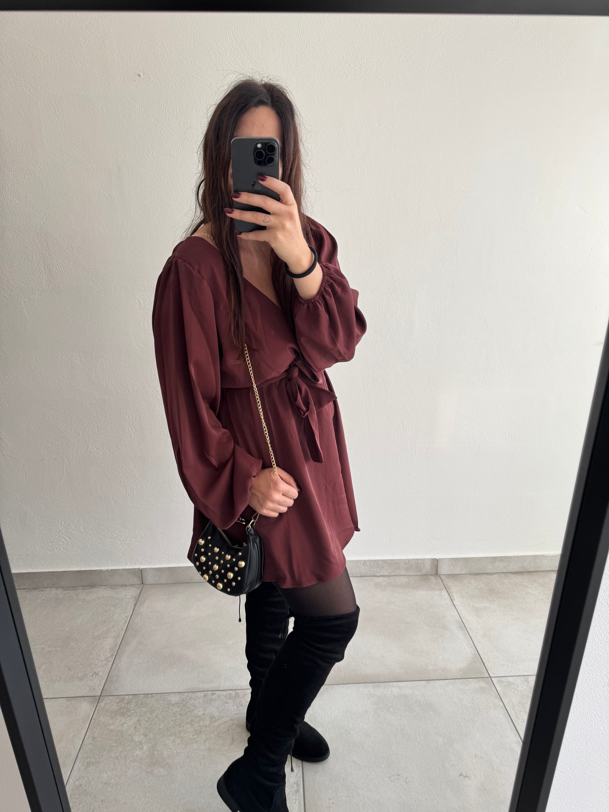 Con polsino elasticizzato maniche larghe e laccetto sul collo