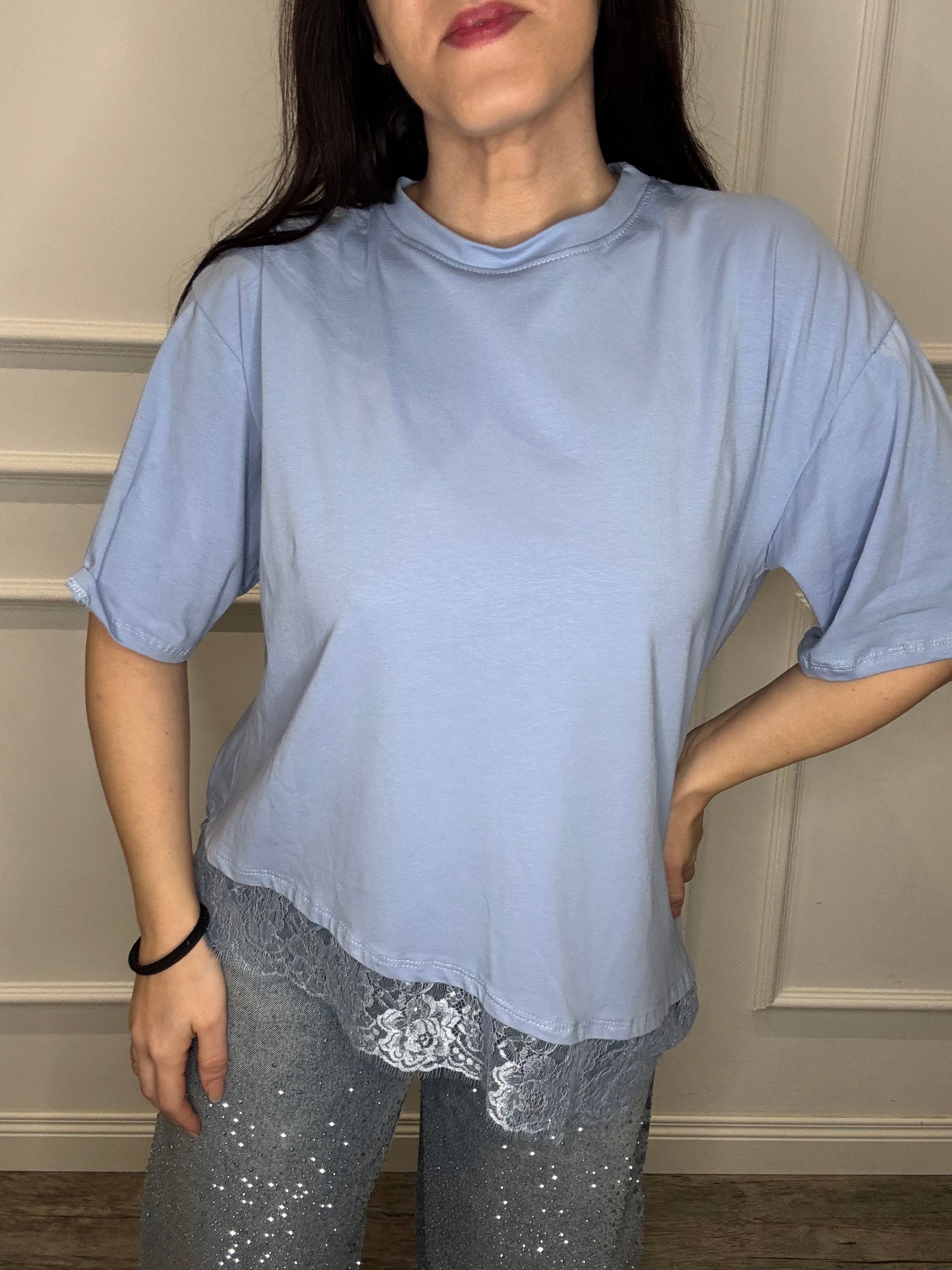 T-shirt asimmetrica con pizzo