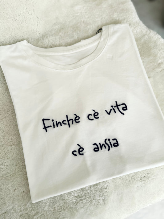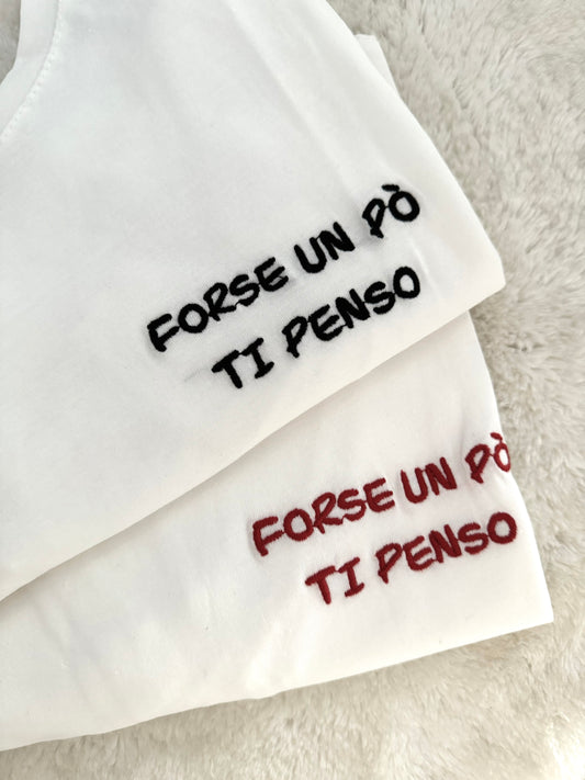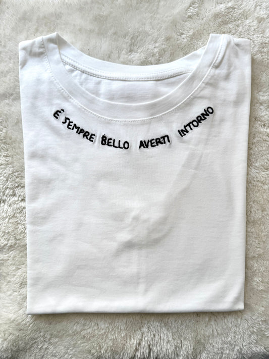 Potrai scegliere la frase, il colore della t-shirt e del filato e il font da utilizzare.